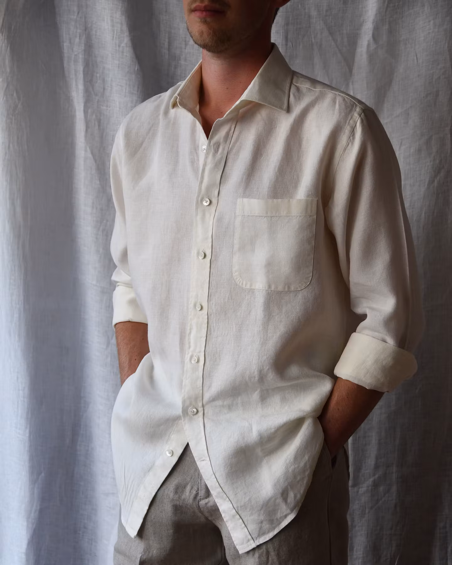 Skjortan passar bra till att bäras instoppad eller som utanpåskjorta. Skärningen är lite ledigare och här får man en sval och skön skjorta med den klassiska ”linne-looken”.
