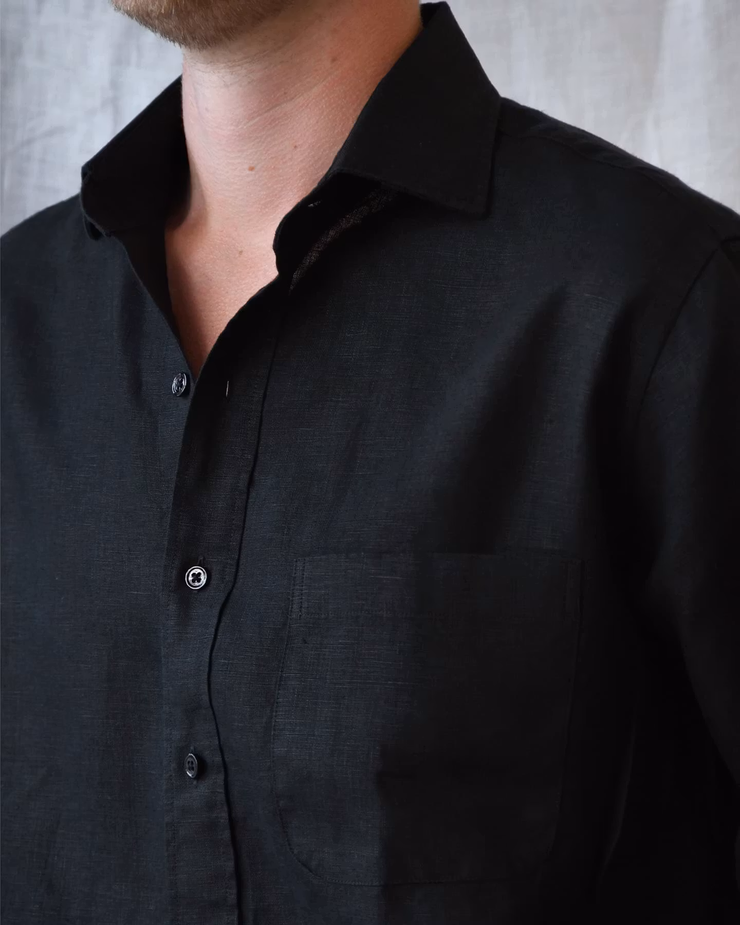 Porlamar svart – linneskjorta med krage