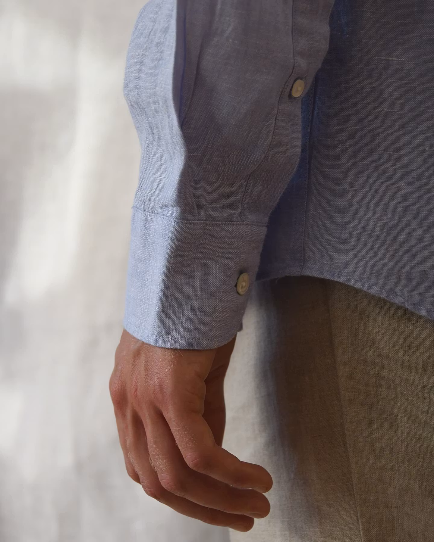 Skjortan passar bra till att bäras instoppad eller som utanpåskjorta. Skärningen är lite ledigare och här får man en sval och skön skjorta med den klassiska ”linne-looken”.