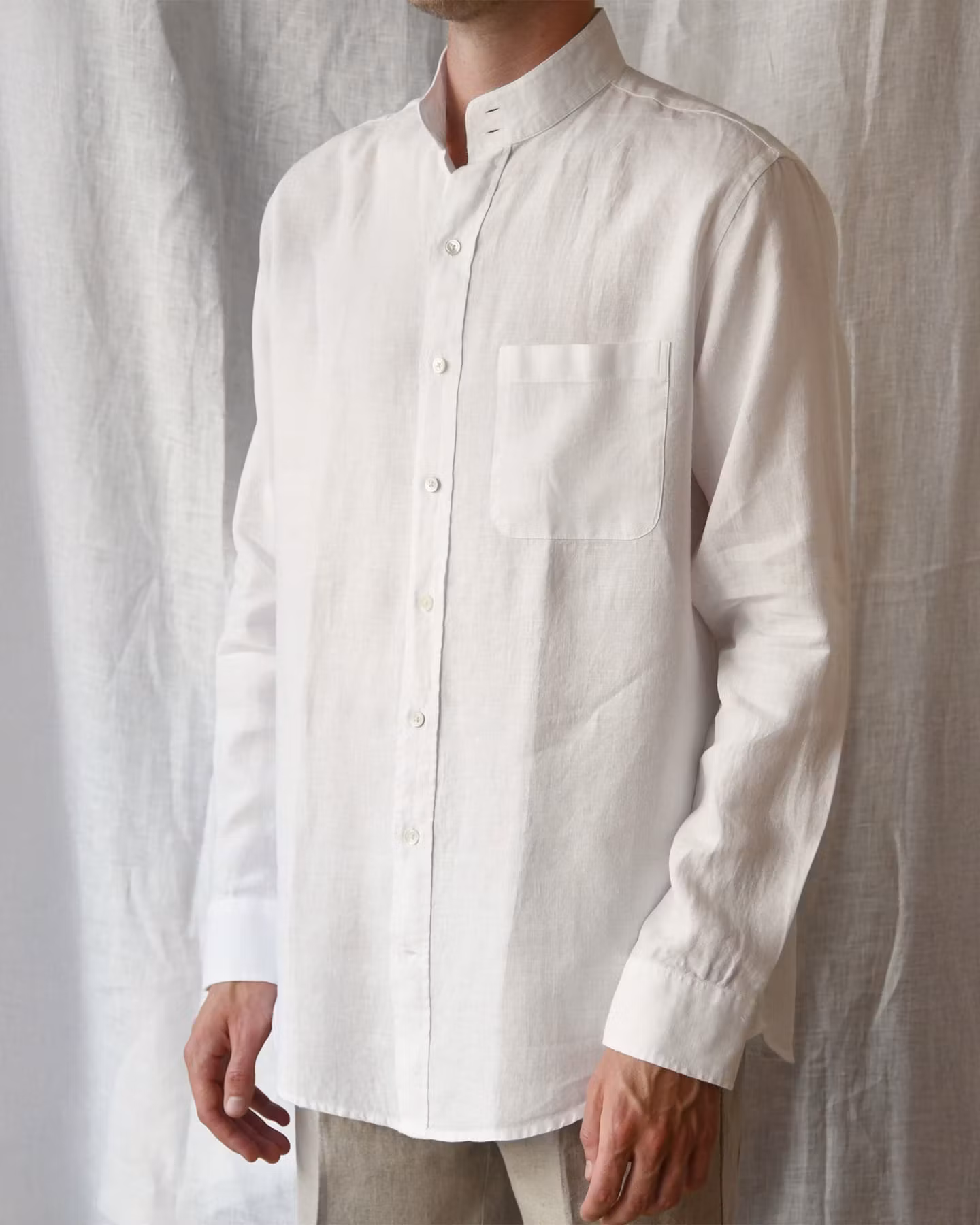 Skjortan passar bra till att bäras instoppad eller som utanpåskjorta. Skärningen är lite ledigare och här får man en sval och skön skjorta med den klassiska ”linne-looken”.